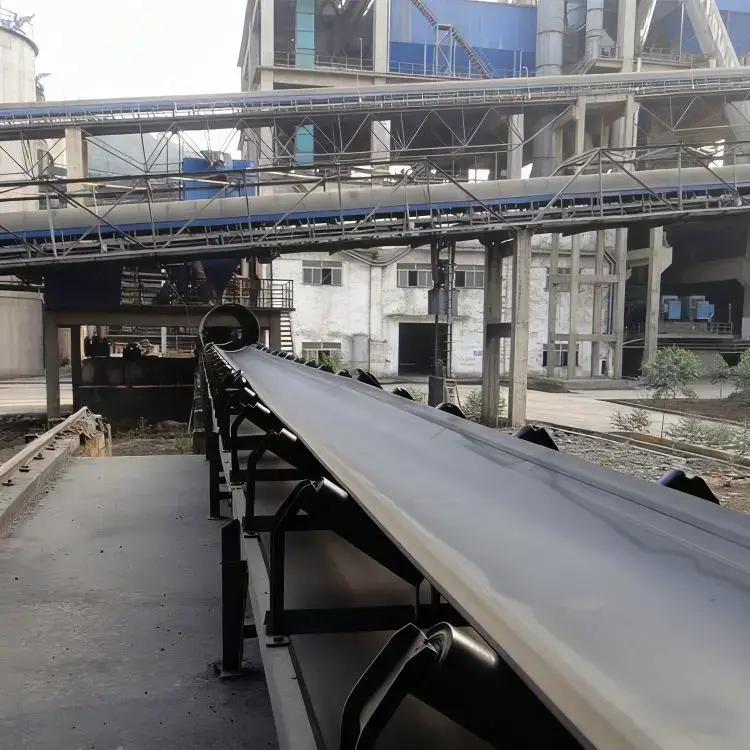 - 3 комплекта лентных конвейеров с большой наклонностью: Адаптированы к участкам с пологими склонами 12-18°, ширина ленты 1200 мм, пропускная способность 1200 тонн/час. Конструкция «группа подшипников-ползунков с глубоким желобом (угол желоба 35°) + нескользящая лента». По сравнению с обычными лентными конвейерами (максимальный наклон 12°) не требует установки промежуточных транзитных пунктов, сокращает длину маршрута на 1,5-2 км, снижает затраты на гражданские работы на 30-35%. Лента из ПВХ с цельным сердечником и антипиреническим добавлением (с добавлением антиоксиданта), диапазон температуропошивости -10℃~50℃, адаптирована к основным климатическим поясам мира. На разгрузочном конце установлено бездвигательное желобное устройство для улавливания пыли, в сочетании с герметизированным бортом ленты, выбросы пыли контролируются на уровне 6-8 мг/м³, что соответствует международным экологическим стандартам.